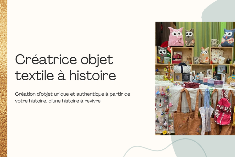 La création d'objet à histoire est collaborative, elle se fait à partir d'un tissu portant déjà sa propre histoire, celle qui nous touche, celle que l'on a envie de raconter, de transmettre et en donnant une fonction à cet objet, il devient un objet réconfortant dans votre quotidien